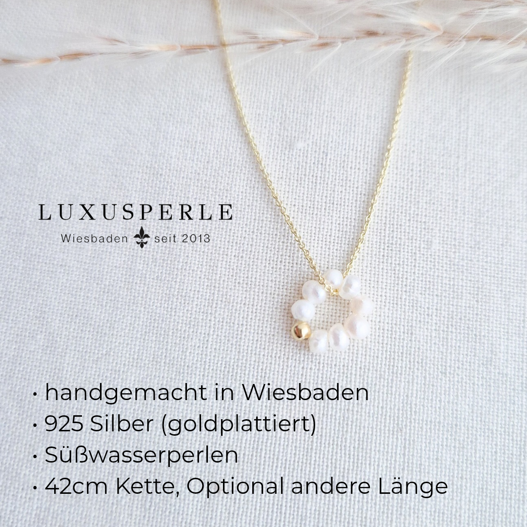 - Material: Hochwertiges Sterlingsilber (optional goldplattiert) / kombiniert mit einem zarten Perlenring