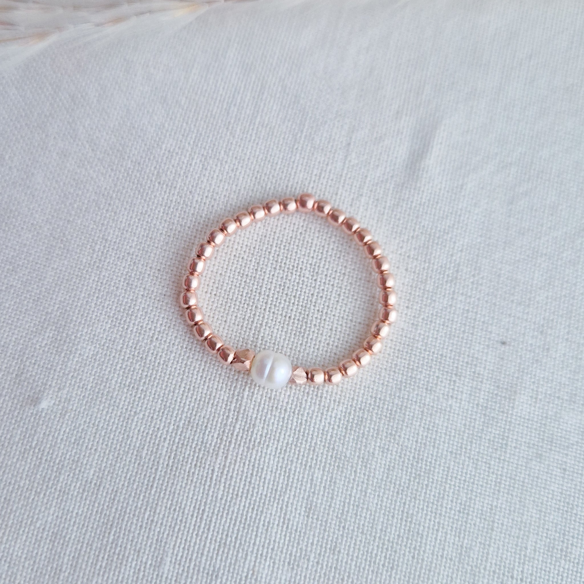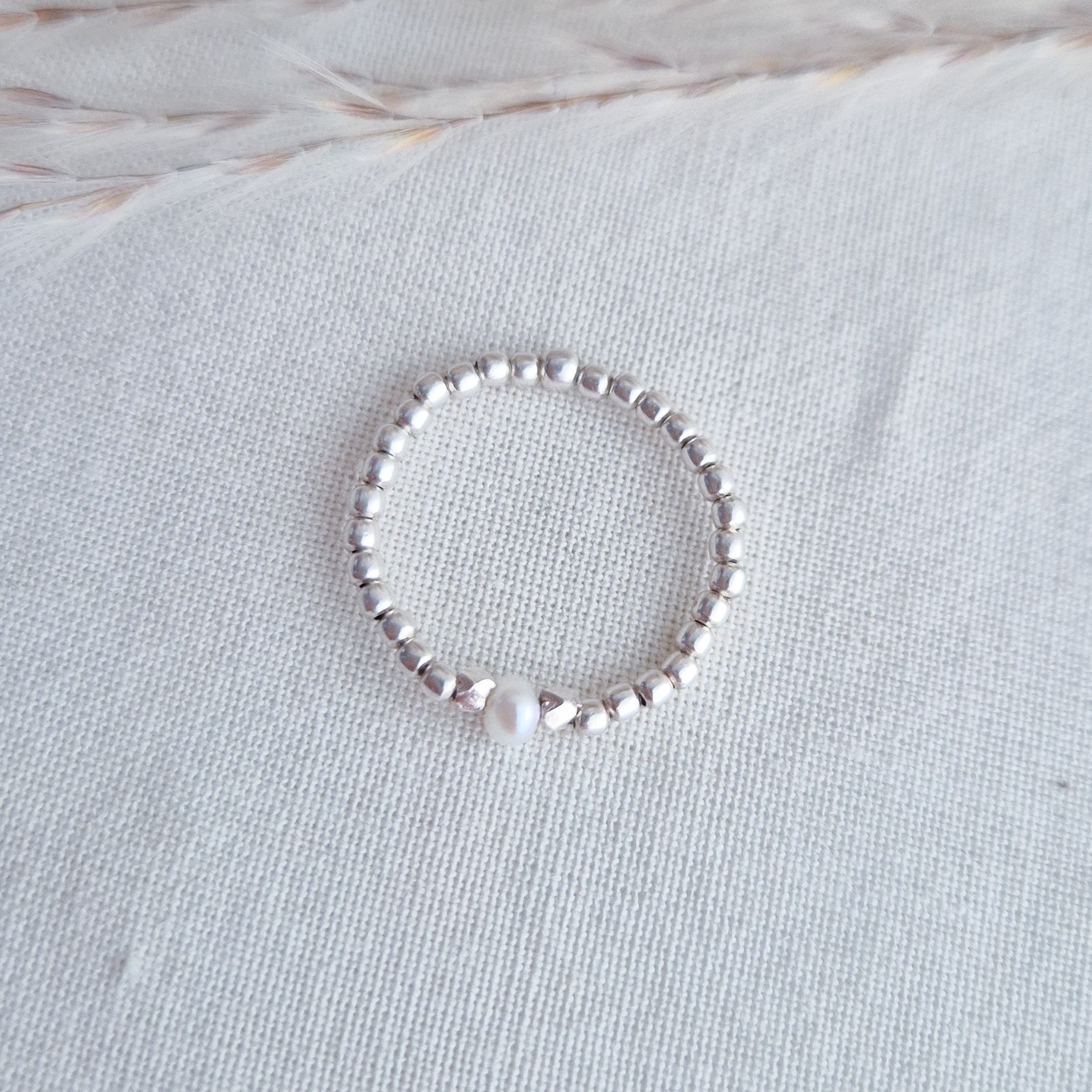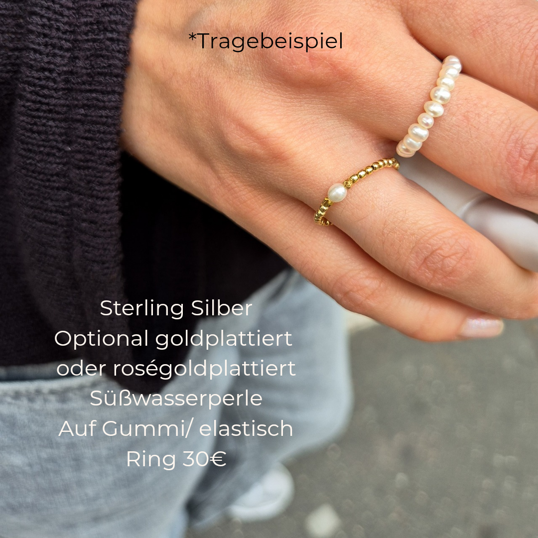 Material: 925 Sterling Silber, wahlweise goldplattiert oder roségoldplattiert, veredelt mit einer edlen Süßwasserperle. Die Ringe sind auf elastischem Gummi gefädelt, wodurch sie angenehm flexibel und komfortabel sitzen.